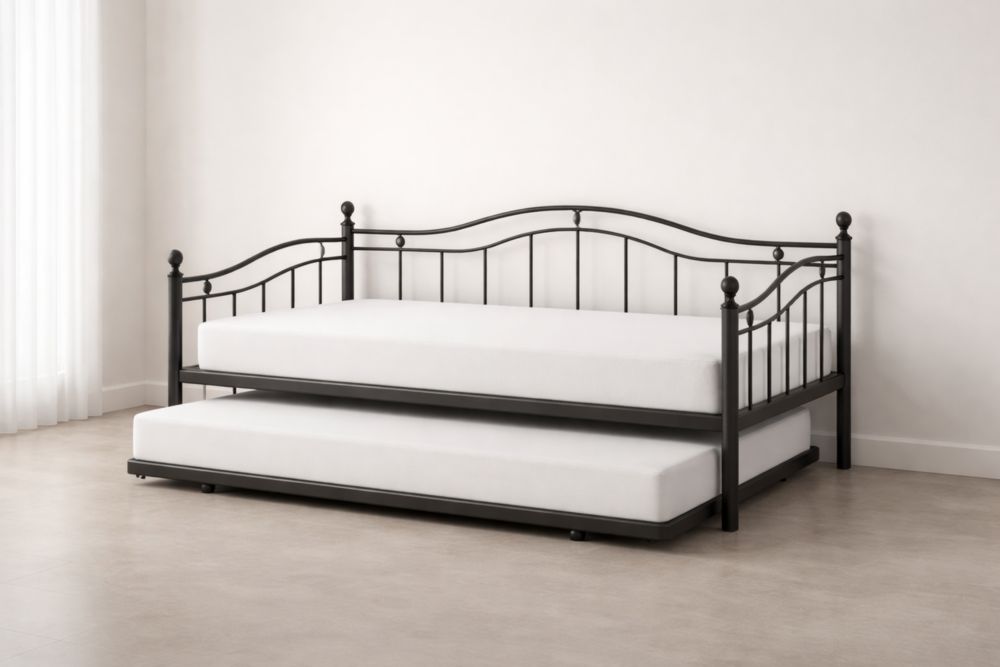 Divano Letto Trundle in Tessuto con Doppi Cuscini