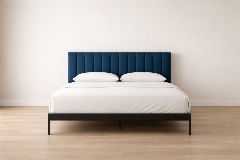 Letto matrimoniale con testiera in velluto blu 200x160×110 cm