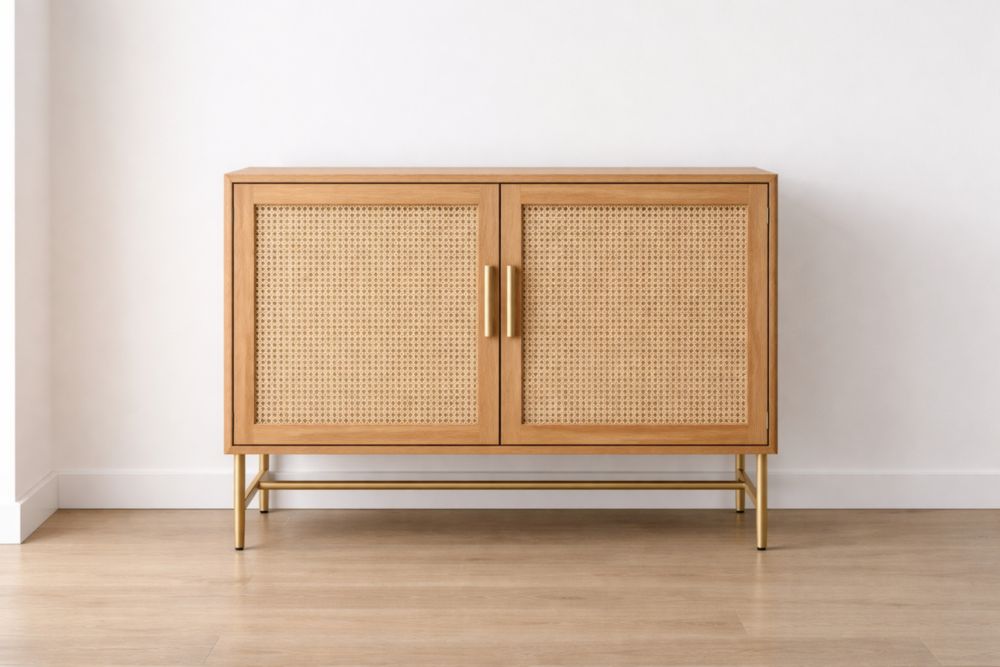 Credenza in Legno MDF Nero con Ante e Maniglie in Metallo