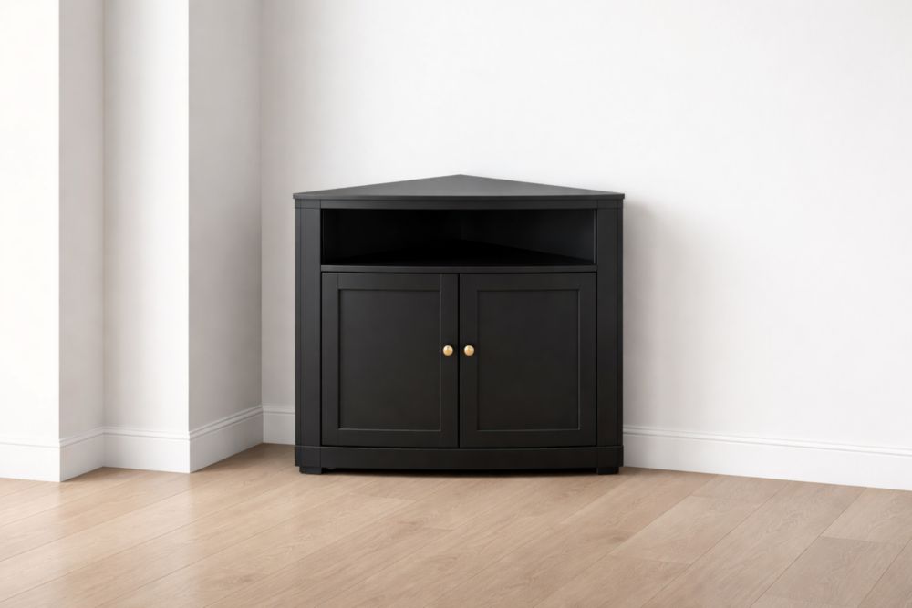 Mobile angolare in legno MDF nero con ante a due pannelli