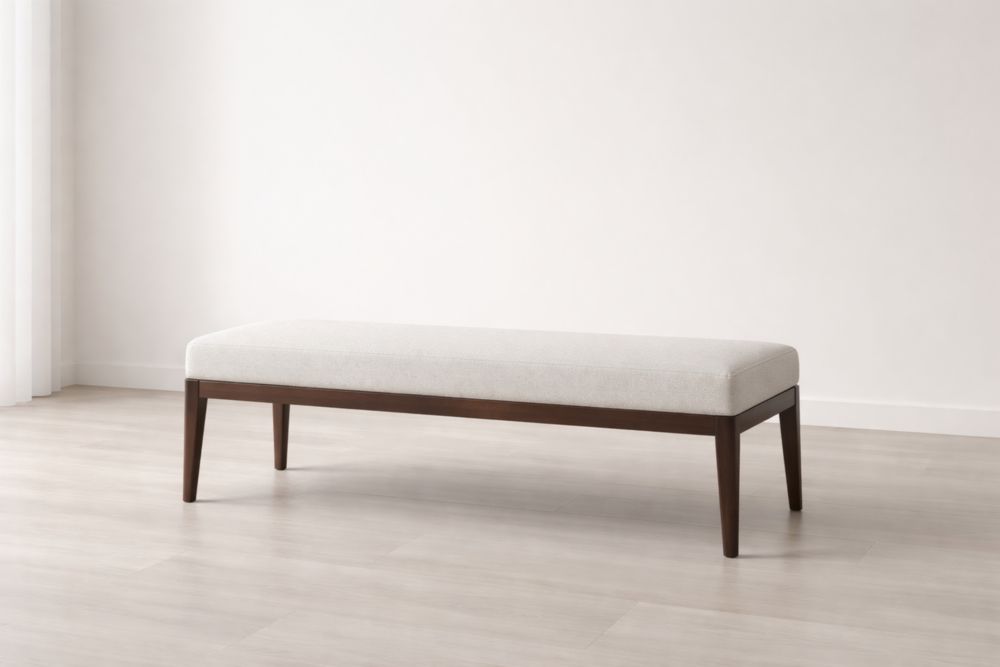 Panca in Legno con Rivestimento Tessile Beige