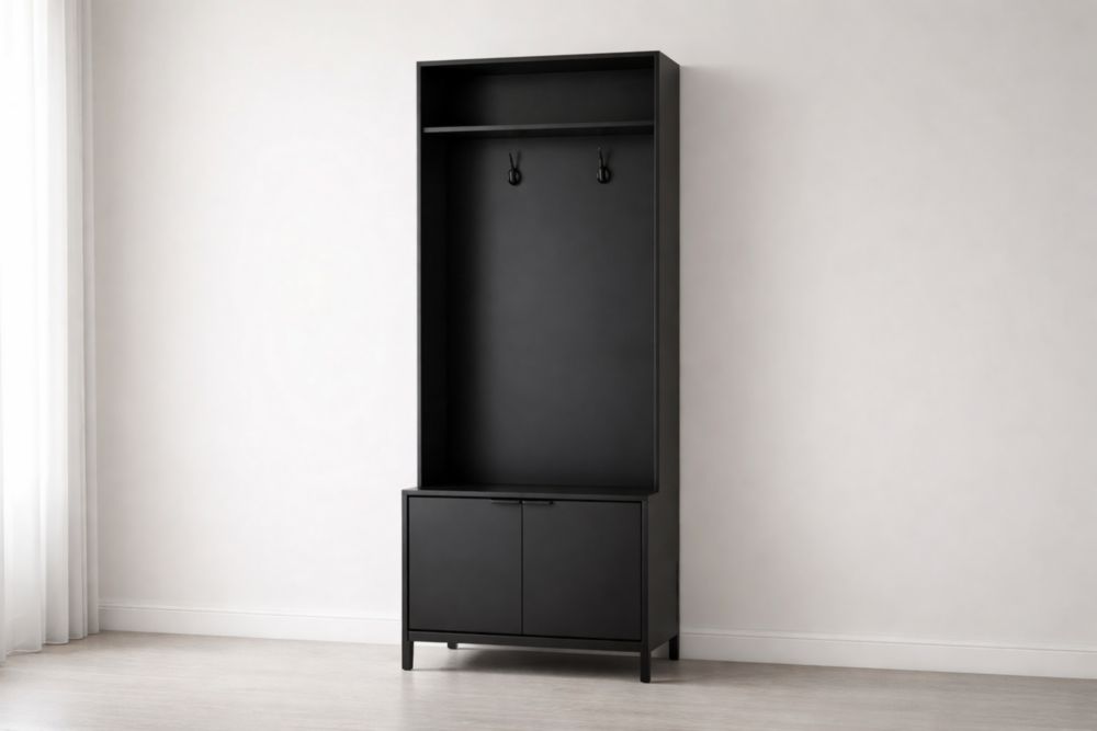 Armadio Ingresso in MDF Nero con Ganci
