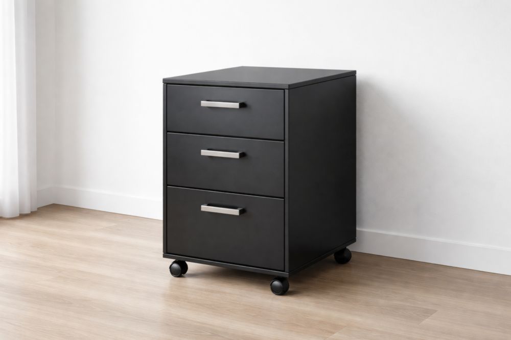 Cassettiera da Ufficio con 3 Cassetti in Metallo Nero con Ruote