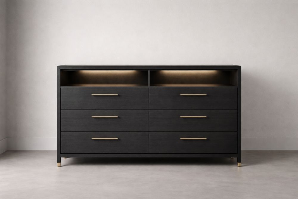 Cassettiera in Legno Nero con Illuminazione a LED, 160x45x90 cm