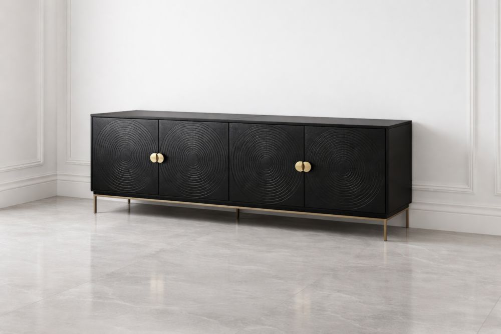 Credenza 4 Ante MDF Nero e Ottone 180x45x70 cm