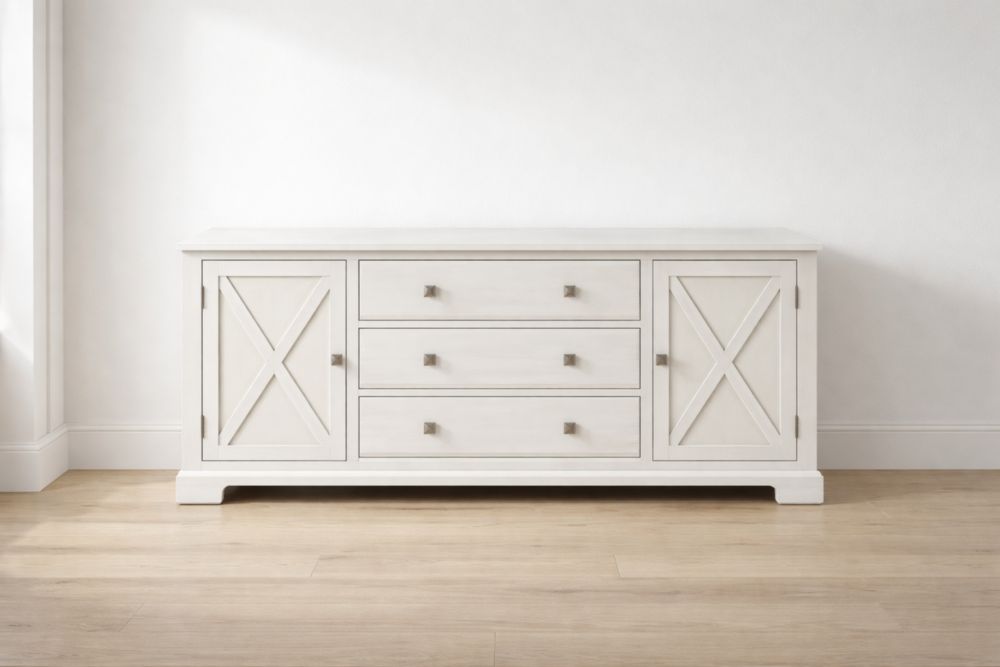 Credenza in legno bianco con cassetti e ante