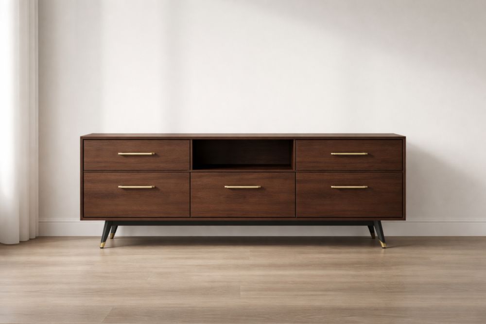 Credenza in Legno Massello con Maniglie in Metallo Dorato 170x45x75 cm