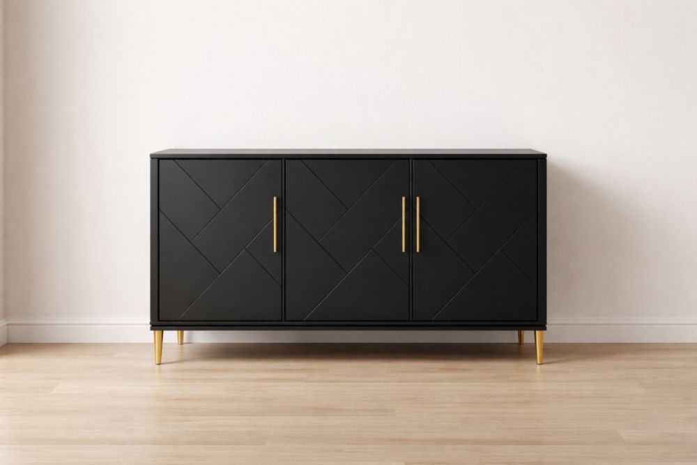 Credenza in Legno MDF Nero con Ante e Maniglie in Metallo