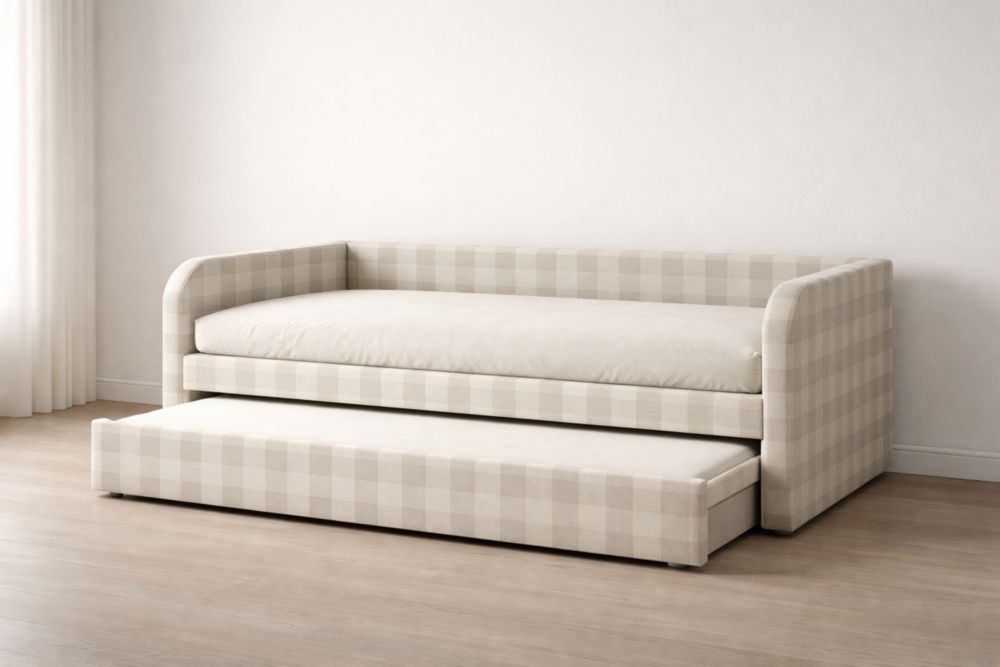 Divano Letto Trundle in Tessuto con Doppi Cuscini