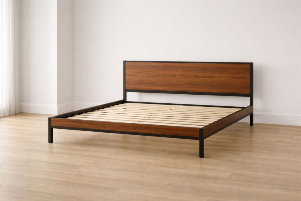 Letto Matrimoniale in Legno Noce e Metallo Nero con Doghe 200x160×100 cm