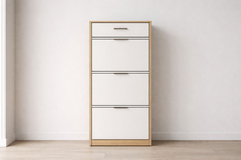 Scarpiera Verticale in Legno MDF e Laminato Bianco con 4 Scomparti