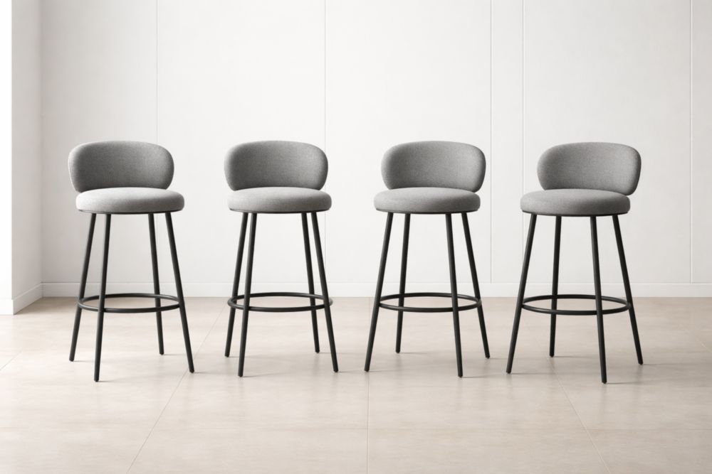 Set di 4 sgabelli alti in tessuto poliestere grigio con struttura in metallo nero