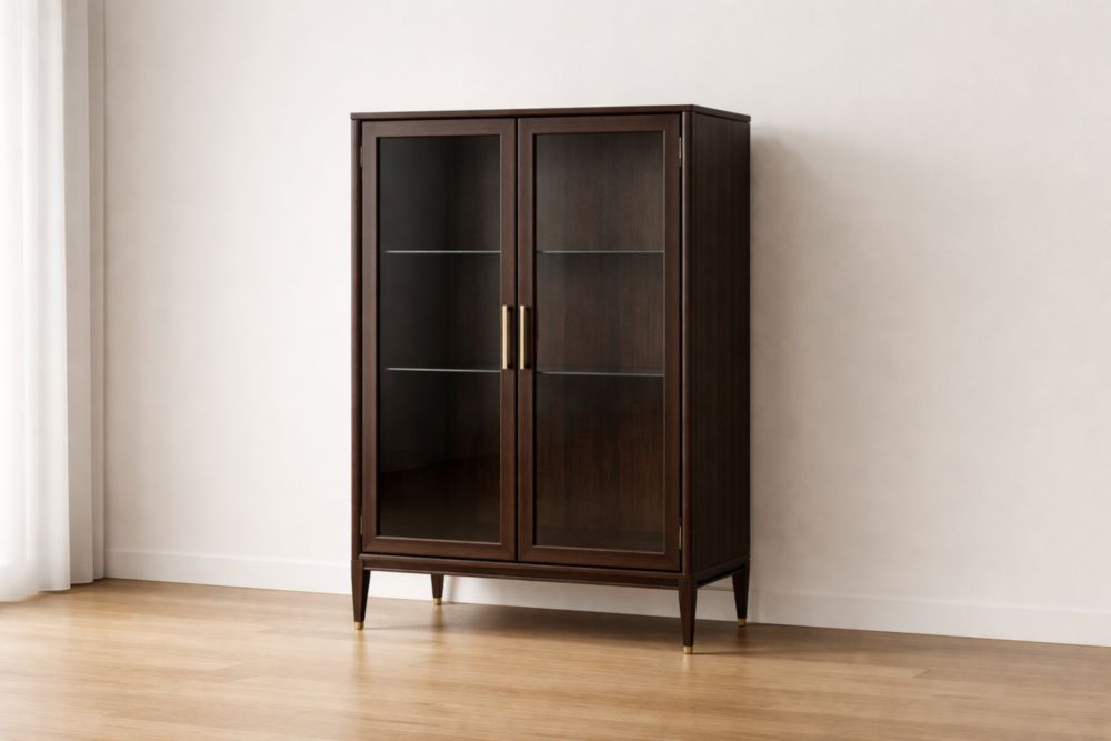 Vetrina in legno massello con ante in vetro temperato marrone 180x90x40 cm